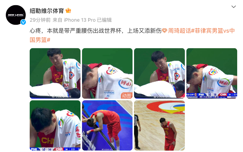 周琦的经纪公司随后表示,周琦是带着严重腰伤出战世界杯的,上一场比赛又添了新伤。