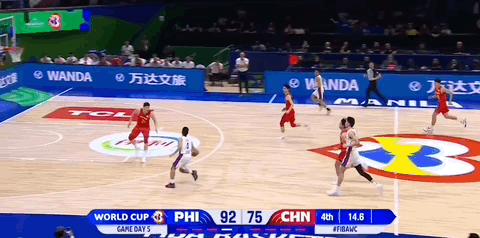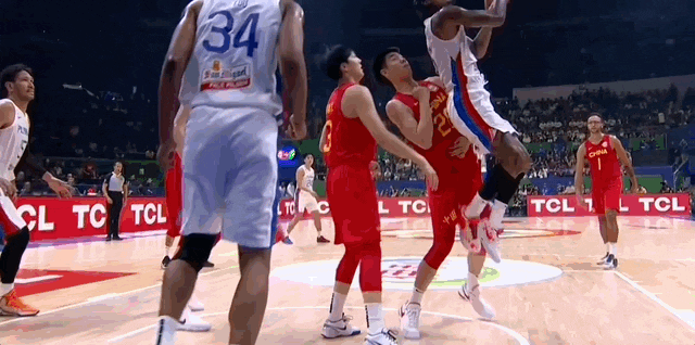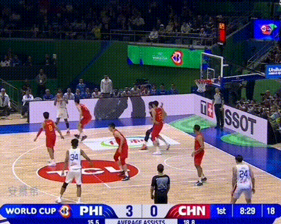 第二节,凭借李凯尔最后阶段的单打,中国男篮保持着微弱的优势,半场40-39领先菲律宾男篮。