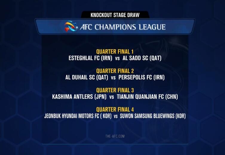 1/4决赛东亚区首回合安排在8月28日、29日打响,次回合则会在9月18日、19日对垒,西亚区首回合将在8月27日、28日进行,次回合则在9月17日、18日展开。