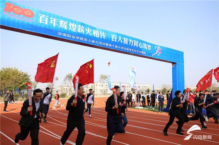 齐鲁网·闪电新闻11月5日讯 11月4日下午,济南职业学院党史学习教育“百年薪火相传”百人接力活动暨“第十届大学生体育文化节”开幕式在彩石校区田径场举行。