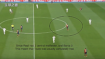 但这个阵型皇马中路只有两个中场而巴萨则有三个,所以图雷也常常无人盯防。