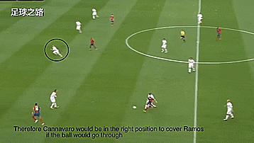 埃托奥在前面顶住对方的中后卫,而亨利在边路活动,我们可以看到此时巴萨中场即使传球穿透防线,卡纳瓦罗也能够立刻补上拉莫斯的位置;