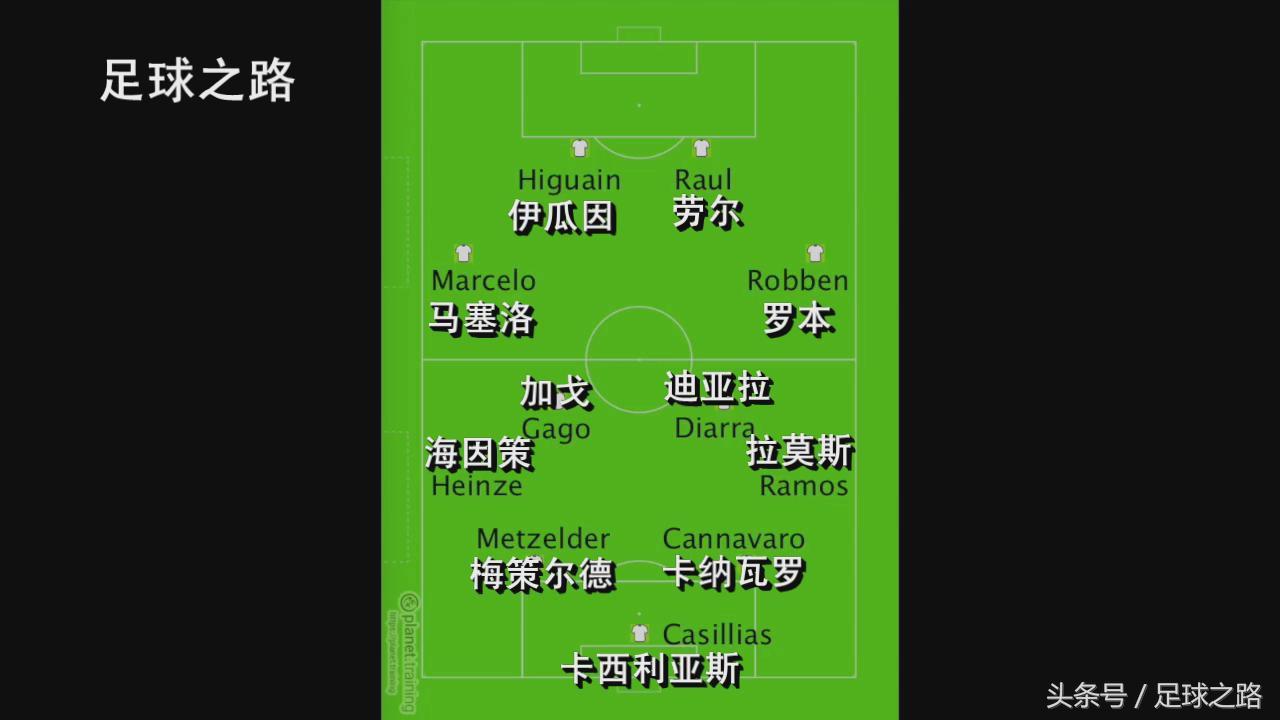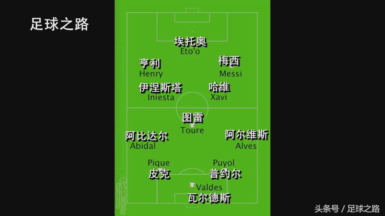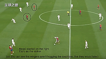 这场比赛就主打皇马后卫身后,梅西在右,埃托奥居中,从下图你可以看到边锋并没有像现在一样经常贴着边线站位。