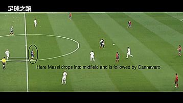 梅西再次进入中场,当时36岁经验丰富的卡纳瓦罗紧跟着他