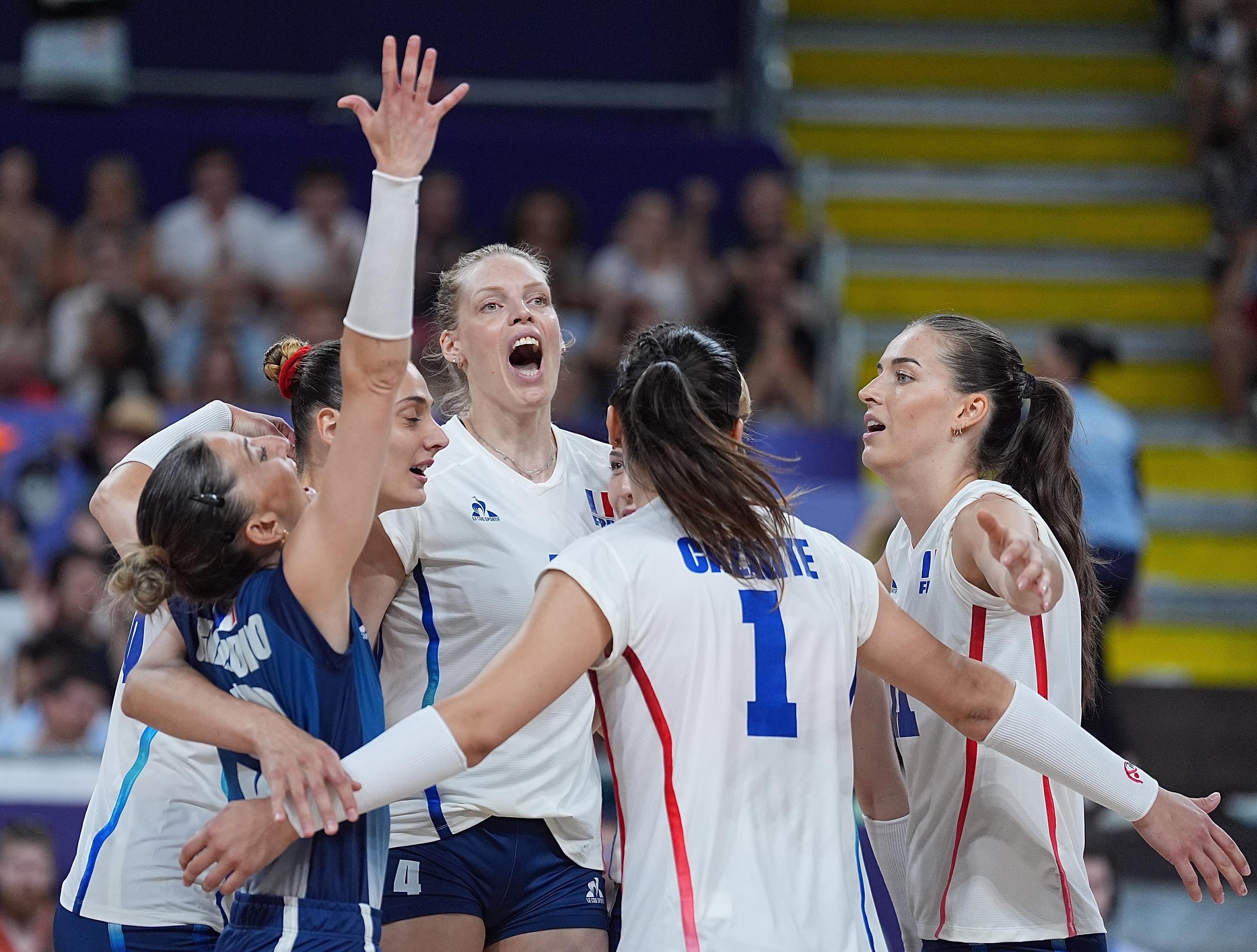 当日,在巴黎奥运会排球女子小组赛A组比赛中,中国队3比0战胜法国队。