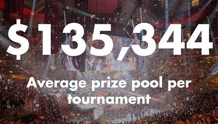 数据显示,一亿美元累计奖金一共来自759个不同的比赛。当然一些小型的比赛数据会缺失,因为不能追踪所有的比赛。但可以确定的是,大部分的比赛都统计在其中。简单的数学就可以知道,比赛的平均奖金是135,344美元。