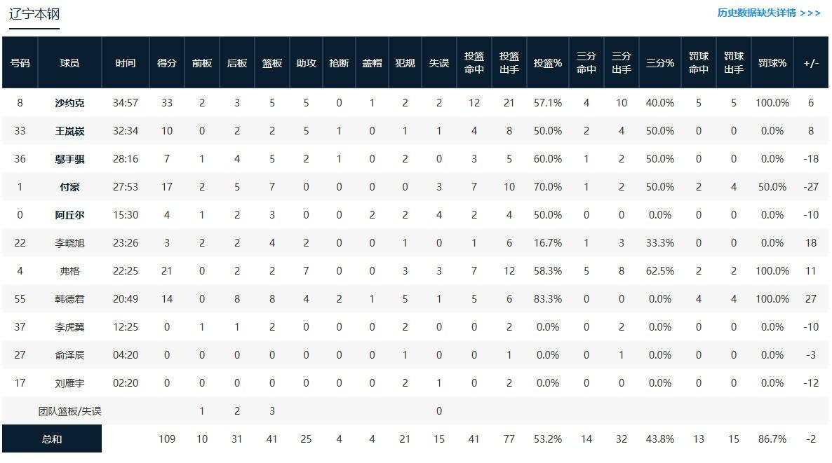 辽宁本钢马里亚尔-沙约克31分5板5助,凯尔-弗格21分2板7助,付豪17分7板。