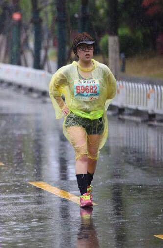 赛前一天下午准备装备,发现少带了一件,然后跑去运动店买。当时就下雨,撑着伞有些无措,汉马当天也预报有雨,我当时内心的想法是如果下这么大雨就退赛吧。天气好还不一定顺利完赛呢,下雨可怎么跑。当时买装备却没想到买条长裤。我觉得我离PB就差一条长裤。