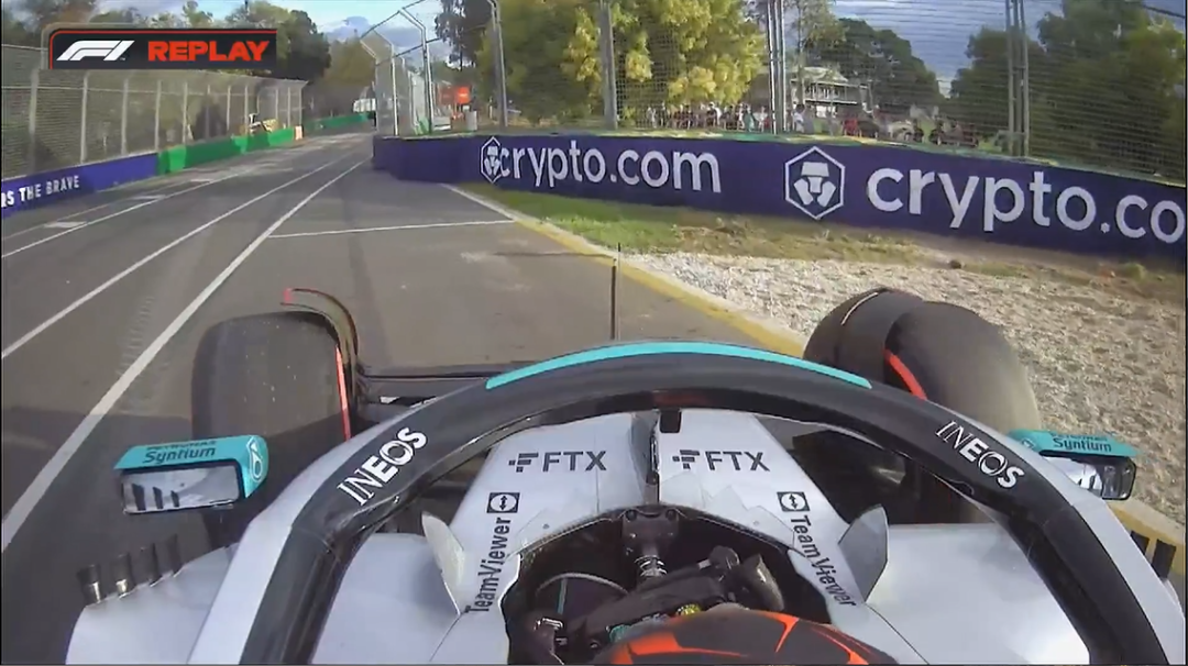 拉塞尔在第一个计时圈冲出了赛道,触发了黄旗。