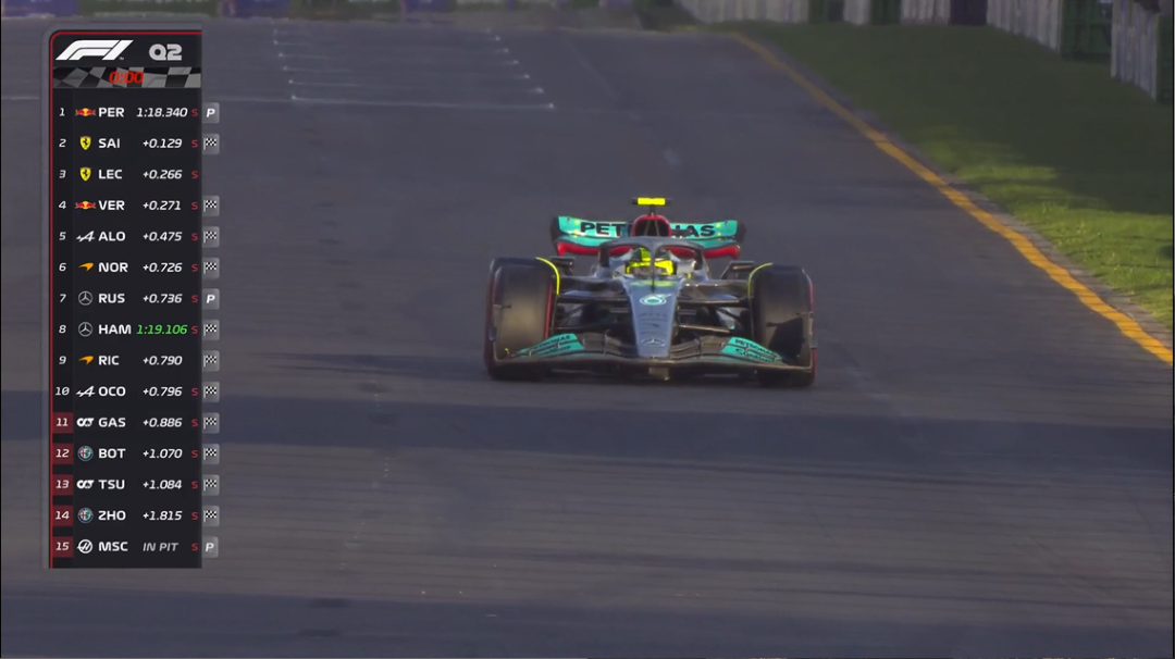最后一轮计时圈,此前位于淘汰区的汉密尔顿将位次提升至第八,惊险晋级。