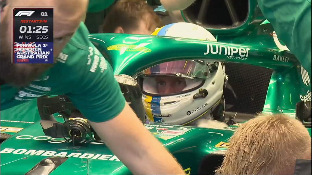 红旗期间,阿斯顿·马丁车队的工程师完成了对维特尔赛车的修理,维特尔准备参赛。