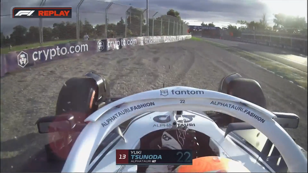 角田裕毅在最后一轮计时圈中,冲出了赛道。