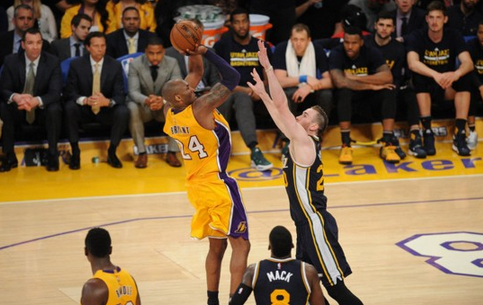 疯狂的科比,在每一位不同防守者面前都完成过分。他展现了万花筒一般的得分方法,完成了多次的And-1,并多次向板凳席上的哈里斯目视致意。