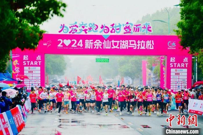 图为2024新余仙女湖马拉松比赛现场。新余市融媒体中心供图