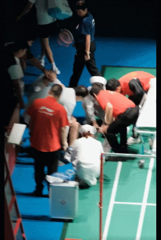 当天晚上举行的团体赛是男团1/4决赛,江苏队和上海队在前四场大比分打成2比2。双方的决胜场为第三单打比赛,由江苏队的石宇奇对上海队的刘海超。第一局,刘海超以21比19胜出。第二局,石宇奇在1比9的比分时感觉身体不适,申请医疗暂停。经赛事医生观察和判断,石宇奇即刻被送往医院急诊进行治疗。