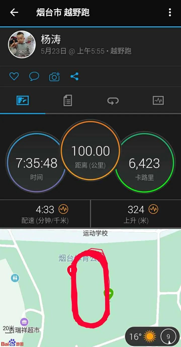 100公里,平均配速4分33秒!在烟台体育公园一400米操场,他连续奔跑250圈!