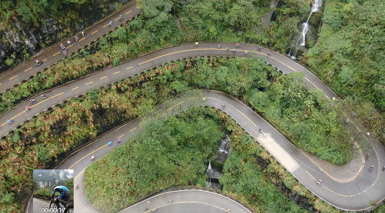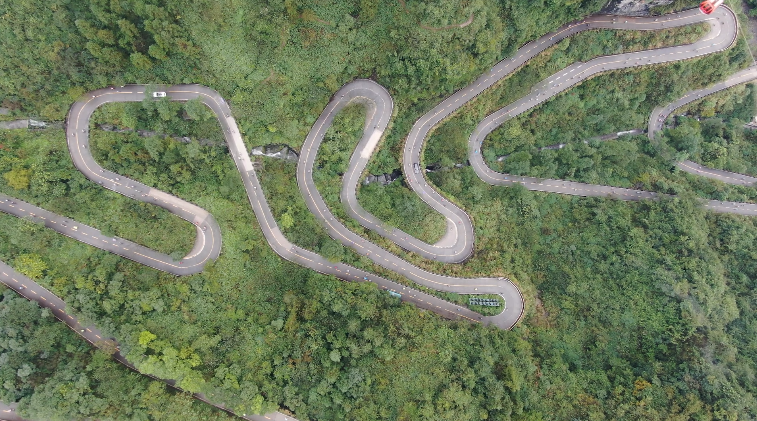 当日,天门山“天路”自行车挑战赛在湖南张家界天门山景区举行,吸引了国内外1300余名车手前来挑战天门山99道弯赛道。