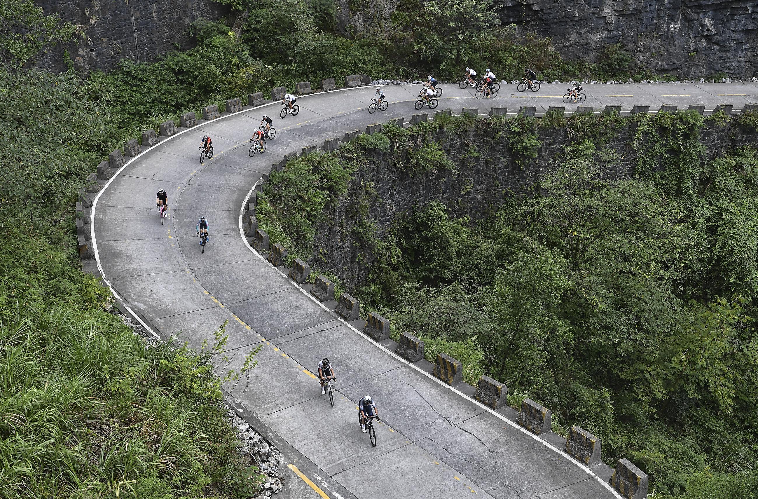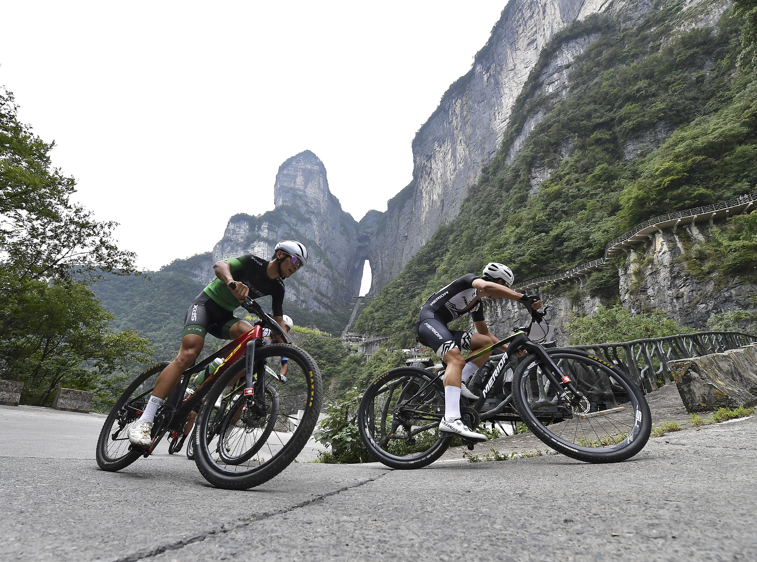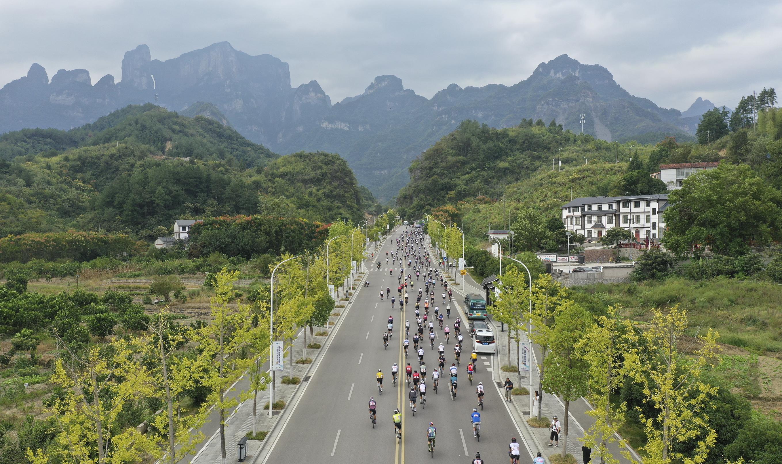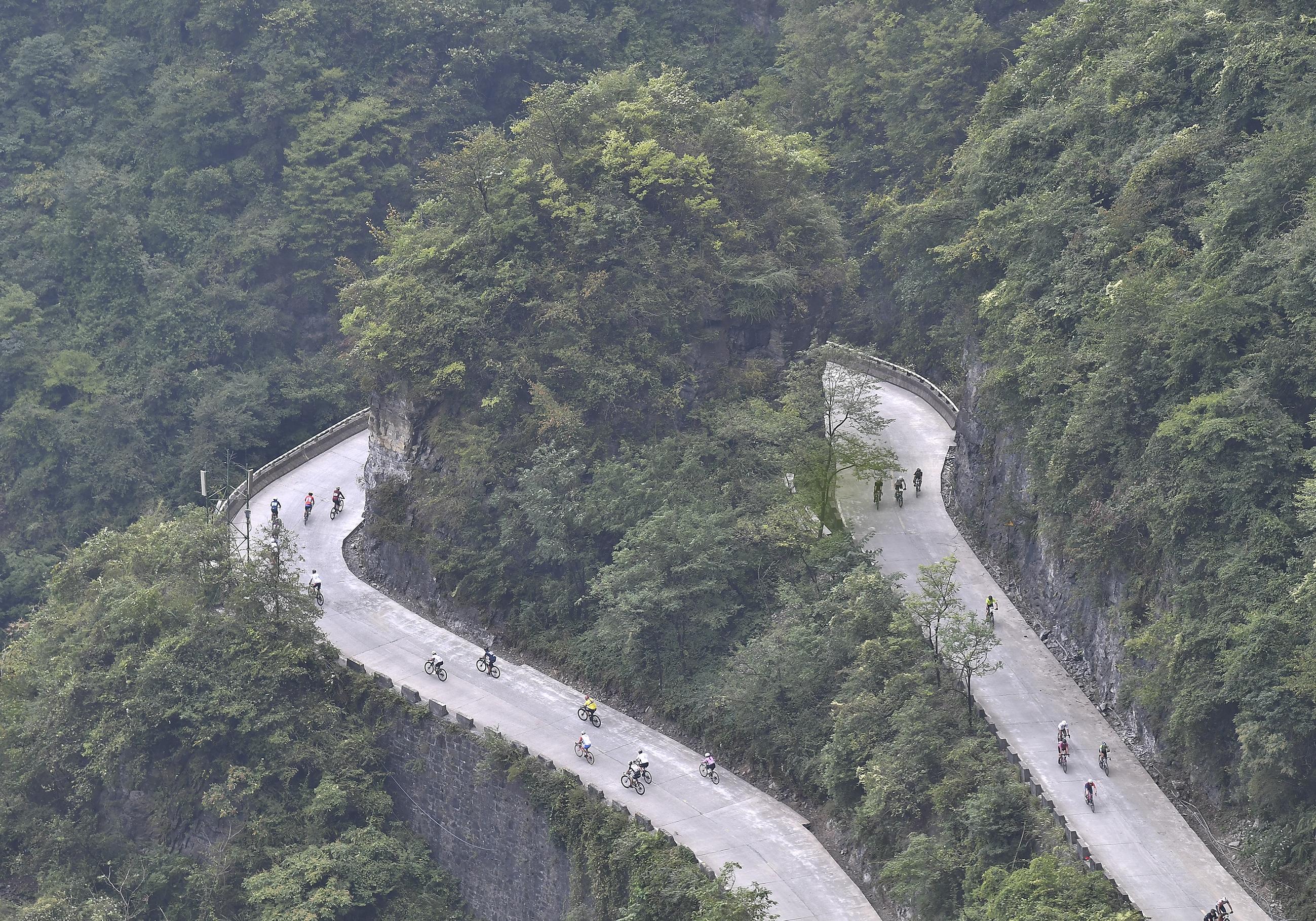 10月18日,由湖南省体育局、张家界市人民政府共同主办的湖南省第九届天门山“天路”自行车挑战赛在张家界举行,来自省内外的1500名自行车运动员参赛。