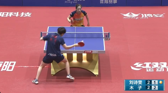 决胜局中,比分依旧胶着,比分从1平来到3平。木子连得3分,6-3拿到盘点,刘诗雯追回2分,刘诗雯回球失误,大比分2-3输给木子,10连胜遭到终结,八一女队将比赛拖入决胜盘,刘诗雯连续两个赛季输给对手。