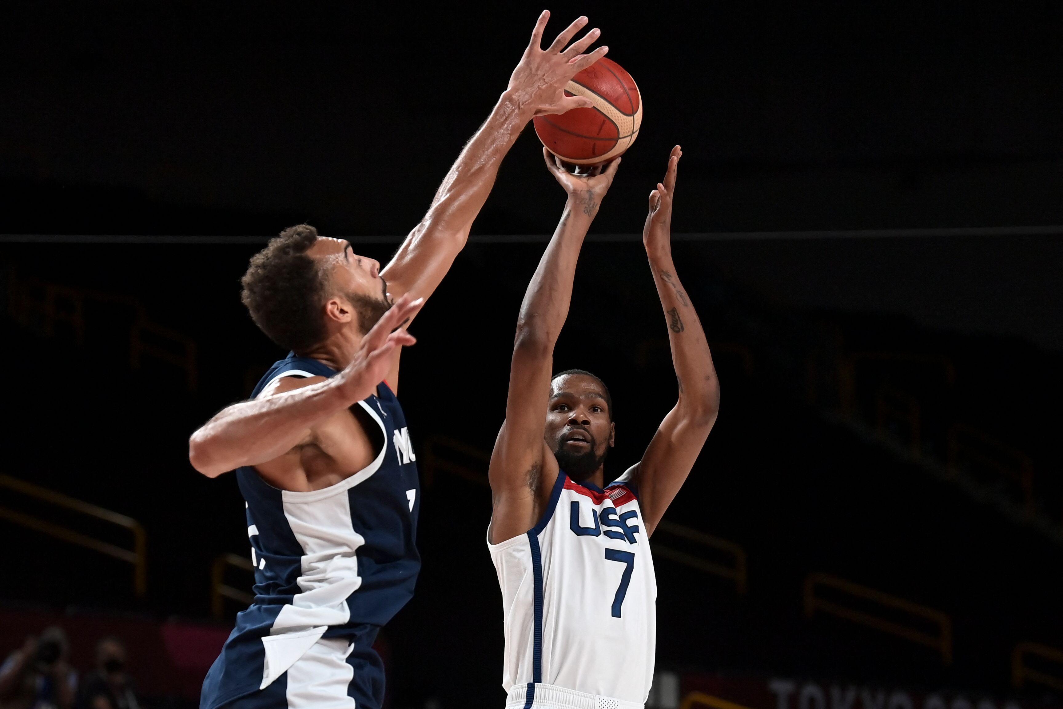 半场比赛,杜兰特就砍下21分,几乎占了全队的一半,而法国男篮则交出了10次失误。