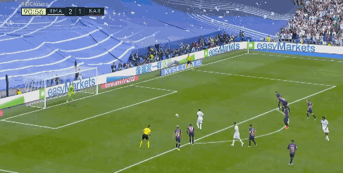 可全力进攻的巴萨防线出错,莫德里奇外脚背吊射破门,帮助皇马3-1锁定胜局!