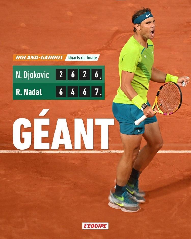直播吧6月1日讯 2022赛季第二项大满贯赛事法国网球公开赛,在法国巴黎罗兰加洛斯进入到正赛第10个比赛日的争夺。5号种子纳达尔苦战4小时12分钟,6-2、4-6、6-2、7-6(4)击败了赛会头号种子、卫冕冠军德约科维奇,第15次打进法网男单半决赛。
