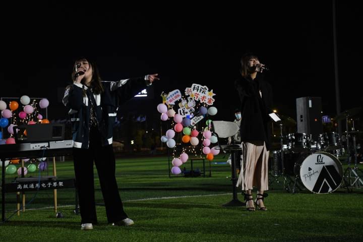 到了夜晚,校园操场上闪光灯熠熠生辉,一场草坪音舞节热闹上演。同学们或唱或跳,在激情四射的表演中挥洒着青春的汗水、彰显着年轻的活力。