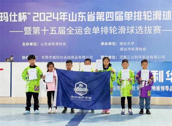 近日,由山东省体育局和山东省轮滑运动协会举办的2024年山东省第四届单排轮滑球锦标赛在烟台大学顺利开赛,来自山东省各地市的参赛队员共计300余人。潍坊瀚声学校学生在比赛中奋力拼抢、顽强拼搏,荣获少年甲组亚军和少年乙组季军;潍坊瀚声学校老师组建的成人队也在本次比赛中荣获季军。