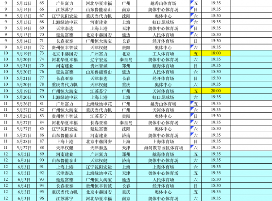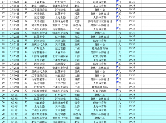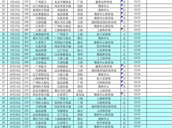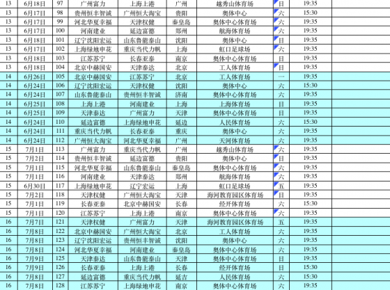 (六)每轮比赛至少安排1场且不多于2场的焦点比赛。(焦点比赛为:强队之间、同城德比、升班马之间、江苏和上海等球队之间的)