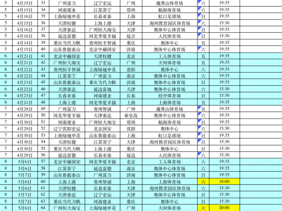2020赛季中超联赛北京中赫国安队具体赛程如下: