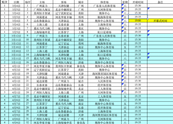 此外,足协也特别强调,各中超赛区及俱乐部接到通知后,请认真核对比赛日期和开球时间,无特殊原因对既定赛程和比赛时间安排不予调整。根据时间安排,2月13日上午12:00前,相关赛程或将有所微调。