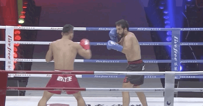 此时的斯拉瓦略显愤怒,再次气势汹汹地扑向付高峰,付高峰立刻防守闪躲,并抓住漏洞以前手拳摆拳接后手直拳命中对手头部,斯拉瓦应声倒地。