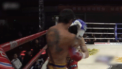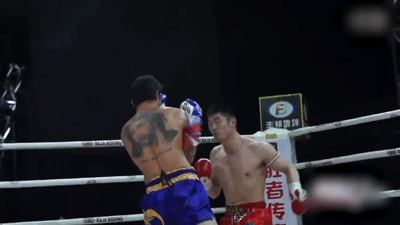 蓝桑坤不愧是泰国名将,他的肘法快速迅猛,且杀伤力十足,曾一度给张开印造成了不小的威胁,多次违规以肘部击打张开印后脑。