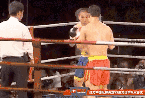 裁判为了保护日方选手的安全,数次在柳海龙的猛攻下将二人分开,防止日本选手出现生命危险。第二回合,像是刚刚完成热身的柳海龙决定结果对手。在踢出一记高鞭腿后,先是两记重拳打得对手晕头转向,接着又补了一记凶狠的重拳,水谷玄瞬间瘫倒在擂台之上,险些翻下擂台。