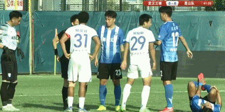 下半场开场仅30多秒,希尔德贝托和任航的对抗中有个报复动作,主裁直接将希尔德贝托罚下,昆山FC只剩下9人应战。