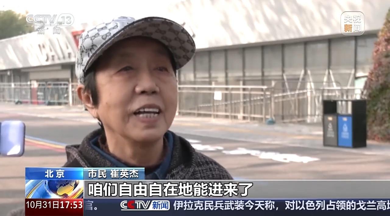 近日,北京奥林匹克中心区拆除了围栏,取消了游客安检,全天候对外开放,受到市民游客欢迎。