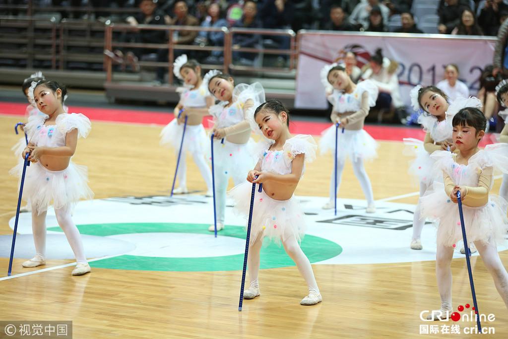 2017年12月21日,浙江,17/18CBA第19轮,八一富邦Vs福建浔兴。篮球宝贝跳可爱拐棍舞萌动全场。