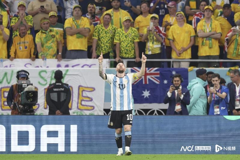 在卡塔尔世界杯上,澳大利亚成为梅西职业生涯千场里程碑的背景板。新华社图
