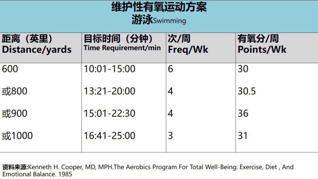 资料来源Kenneth H. Cooper, MD, MPH.The Aerobics Program For Total Well-Being: Exercise, Diet , And Emotional Balance. 1985