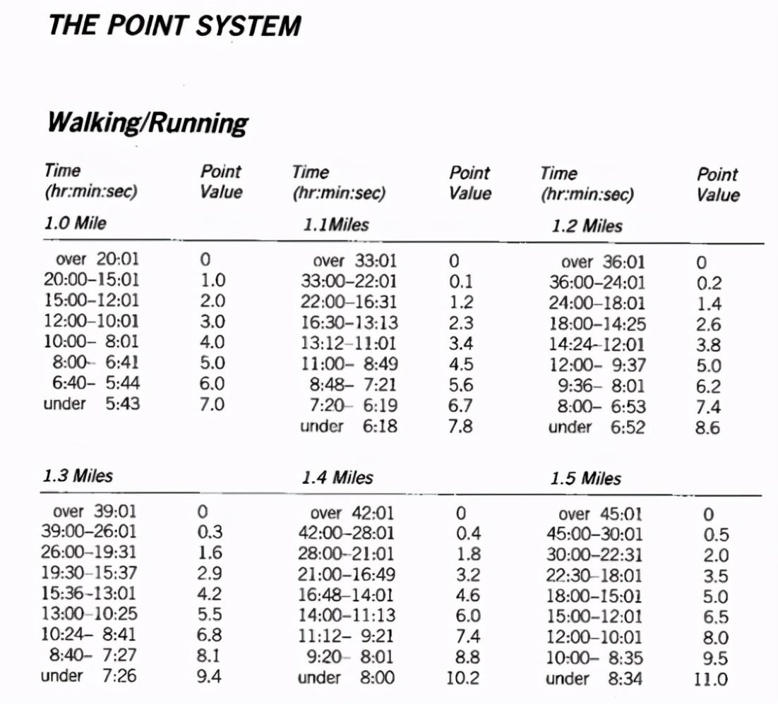 ★例如:跑步,<8分钟完成一英里,得5个有氧分。