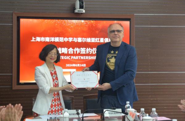南模中学校长李啸瑜和红星俱乐部主管DEJAN IGNJATOVIC签约