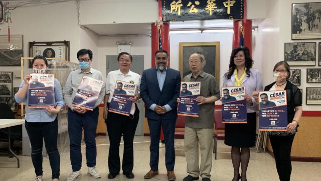 【侨报记者杨澄雨6月9日纽约报道】布碌仑日落公园第38选区的西裔市议员参选人祖尼加(Cesar Zuniga)9日访问纽约中华公所,就公共安全、仇恨犯罪等华社关心的议题分享政见,希望获得更多选民支持。