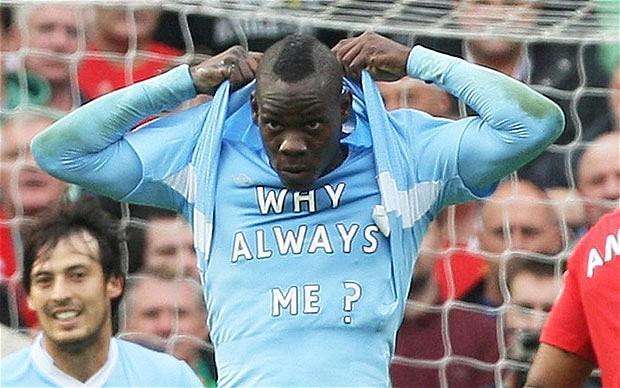 巴洛特利在进球后亮出“why always me(为什么总是我)”的T恤