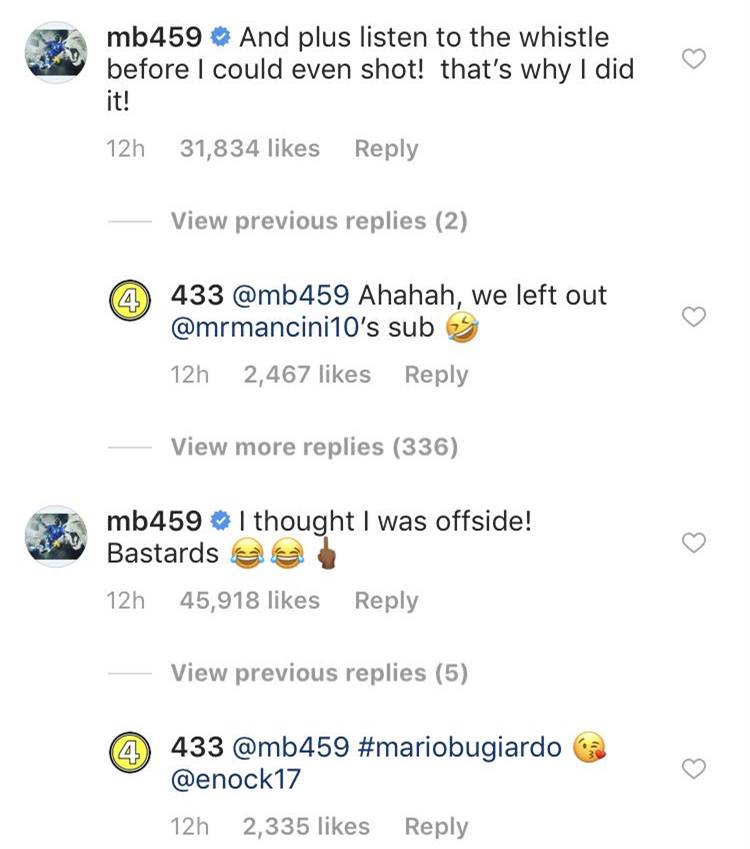 近日,媒体433在INS分享了巴神这段视频,时隔八年搞怪的巴神还是球迷快乐的源泉。令人意想不到的是,巴神也现身评论区,他解释道:“我以为我越位了,因为我听到了有哨声,所以才这样射门的!”