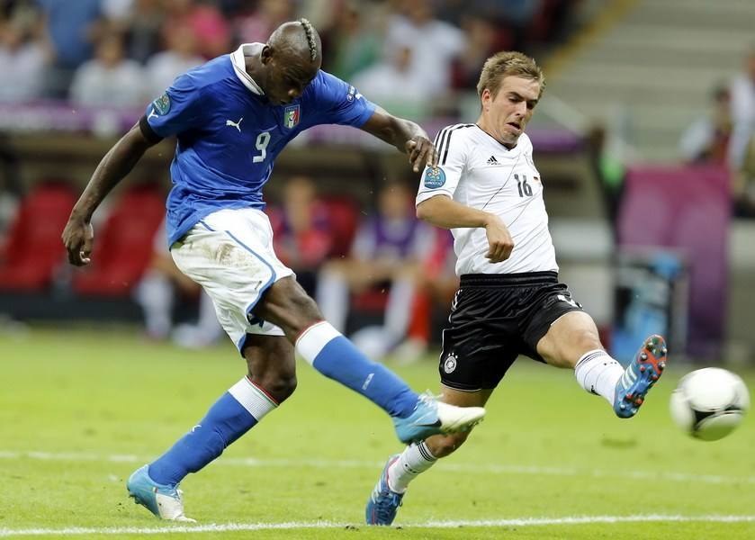 同样是2012年的欧洲杯,半决赛意大利对阵德国,巴洛特利率先打入一粒头球帮助意大利队领先。而第二球,则是巴洛特利“不讲理踢法”的最好体现。第36分钟,巴洛特利获得了单刀的机会,面对诺伊尔,巴洛特利没有一丝犹豫,一脚外脚背爆射打的诺伊尔是目瞪口呆。
