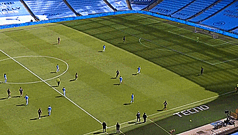 当守门员把球拿在手里,他们会抬头看球场,这个时候我们可以站在守门员后面,避开他们的视线。