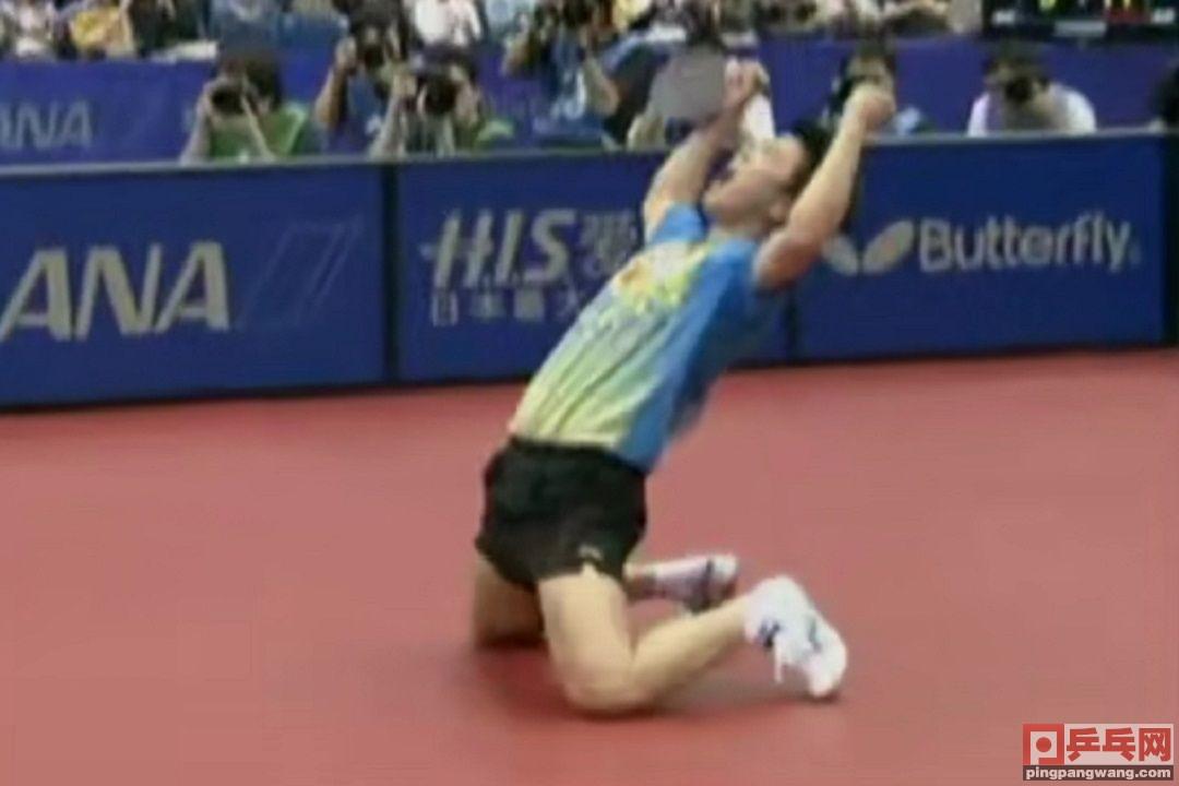 王皓激动跪地呐喊庆祝,这是王皓职业生涯最高成就。