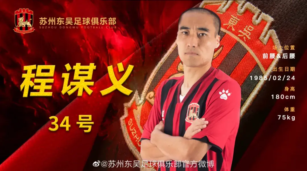 苏州东吴冲甲成功,那2020赛季可能会和老东家浙江绿城交手,虽然明年程谋义将年满35岁,34号的战袍会不会换成35号?