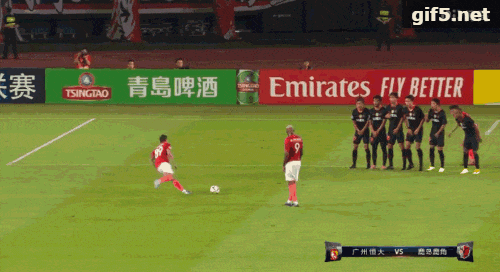 第45分钟,恒大获得前场任意球,艾克森助跑想给塔利斯卡做掩护,但随后他竟突然滑倒了。不少球迷戏称这是致敬穆勒。