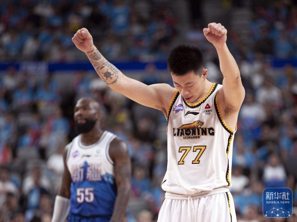 ↑辽宁本钢队球员张镇麟庆祝比赛胜利。新华社记者 雒圆 摄